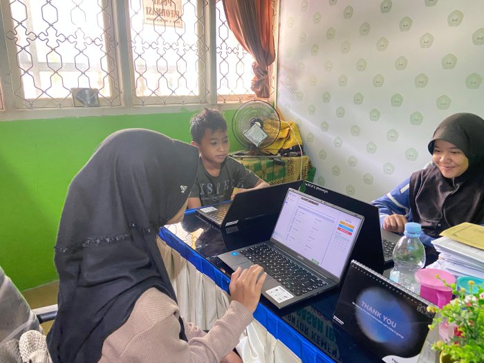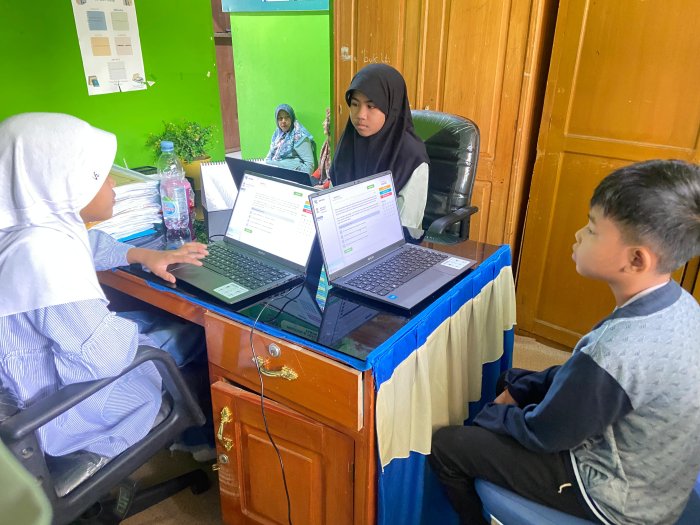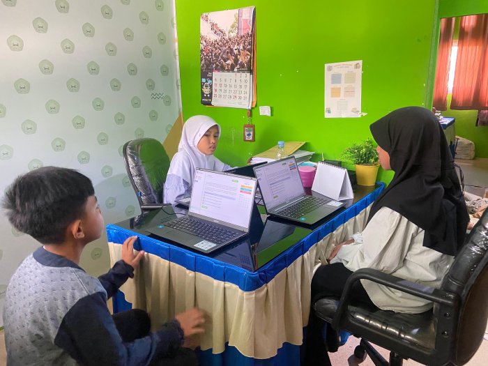 Pada sesi pertama mata pelajaran IPAS, terlihat siswa-siswi MIN 1 Merangin yang mengikuti simulasi, yaitu Sayna, Vania, dan Haikal. Mereka terlihat fokus dan serius dalam mengerjakan soal-soal yang diberikan.