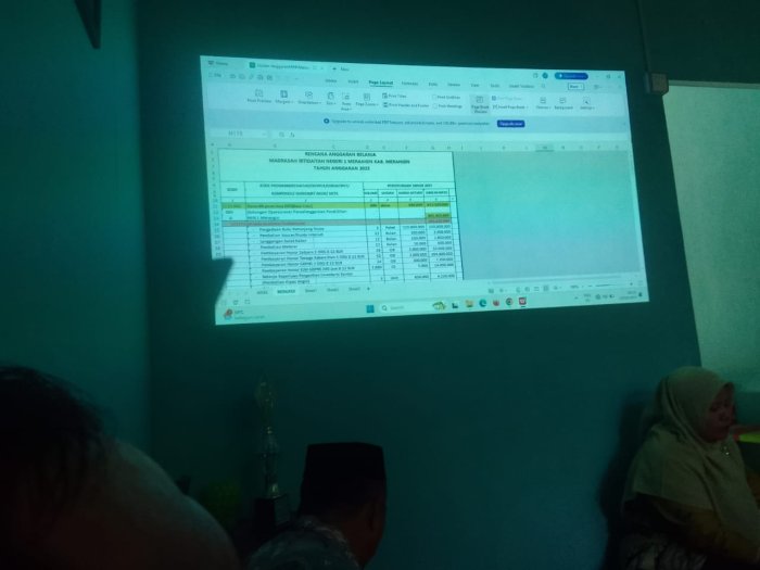 Kepala MIN 1 Merangin, Bapak Saidi Muzakkir, S.Pd.I, memimpin rapat dengan efektif dan efisien, memastikan bahwa semua mata anggaran dibahas secara menyeluruh. Bendahara madrasah, Ibu Hj Usnita, mempresentasikan rencana anggaran dengan detail, sehingga memudahkan peserta rapat untuk memahami dan memberikan masukan.