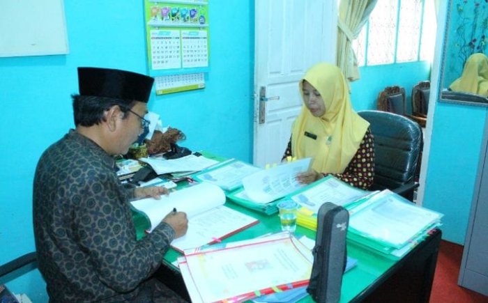 Kepala MIN 1 Merangin, Bapak Saidi Muzakkir, S.Pd.I, mengawasi langsung proses supervisi administrasi guru. Beliau menekankan pentingnya administrasi yang baik dalam meningkatkan kualitas pendidikan. "Administrasi yang baik adalah kunci untuk meningkatkan kualitas pendidikan. Oleh karena itu, kami meminta semua guru untuk melengkapi administrasi mengajar dengan baik," ujar beliau. saya meminta agar guru yang lansung supervisornya agar menemuinya di ruang kerja saya dengan membawa ADM lengkap, tambahnya lagi
