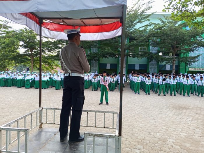 Merangin, Humas MIN 1 Merangin : Hari Senin, 27 Oktober 2025, MIN 1 Merangin menggelar upacara bendera yang berlangsung dengan khidmat. Bertindak sebagai pembina upacara, Bapak Aiptu Teguh Iman, SH, Kambel dari Lantas Polres Merangin, menyampaikan amanat penting yang mencakup tiga pesan utama.